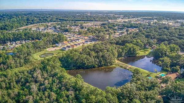 This gorgeous 1.79 acre LAKE FRONT lot is ready and waiting for its next owner. Situated at the end of a private drive, with over 400 ft of waterfront, it is the perfect location for your new dream home. Its central location is only minutes from both Cordova & University Malls, 2 Major Pensacola hospitals, and the Airport. The Wetland Delineation report shows approx 1 acre is high and dry and .8 acres is lower and would need special permitting to build on. Private drive access via a 20ft wide paved easement. Please call your agent for a showing before entering the property.