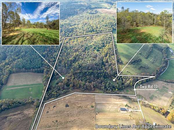 This mostly wooded 62.8-acre property provides excellent wildlife habitat along with great potential as an investment or weekend retreat. The land features two food plots, each with a new box blind already in place. A small creek winds through the property, and a well-established ATV trail system offers access to the majority of the land. Some timber was recently select cut, providing improved wildlife habitat and allowing for future timber growth. Coshocton County is well known for its outstanding deer and turkey hunting, and this property is no exception. The land has frontage on both County Road 436 and Township Road 71 and consists of two parcels being sold together. Conveniently located near US-16, Dresden, and Coshocton, the property also offers several building sites--ideal for a future cabin or country home. Electric service is available at the road, and any mineral rights owned by the sellers will transfer with the sale. An additional 41 contiguous acres are also available for purchase, offering the opportunity to own over 103 acres in total.