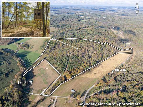 41 acres for sale in Coshocton County, Ohio. This mostly wooded property provides excellent wildlife habitat along with great potential as an investment or weekend retreat. A small creek winds through the property, and a good ATV trail system offers access to the majority of the land. A ridge-top box blind is already in place. Some timber was recently select cut, providing improved wildlife habitat and allowing for future timber growth. Coshocton County is well known for its outstanding deer and turkey hunting, and this property is no exception. The land has frontage on both County Road 436 and Township Road 71. Conveniently located near US-16, Dresden, and Coshocton, the property also offers several building sites--ideal for a future cabin or country home. Electric service is available on the property, and any mineral rights owned by the sellers will transfer with the sale. An additional 62 contiguous acres are also available for purchase, offering the opportunity to own over 103 acres in total.