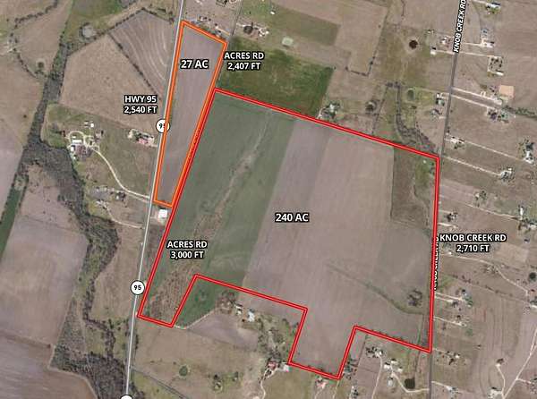 Presenting Academy Acres, located just north of Little River-Academy featuring two prime parcels totaling approximately 267 acres, just 3.5 miles from the Temple City Limits. The 27-acre tract has optimal frontage of 2,540 feet on TX Hwy 95 near the newly-opened Academy High School. The large 240-acre parcel of prime agricultural acreage on Acres Road is currently a working farm and is ideal to keep in agricultural production while waiting for future opportunities. May be sold in smaller parcels. Academy Acres is partially in Little River-Academy City Limits, and partially in the Temple ETJ. Knob Creek winds its way down the east perimeter creating a natural wildlife habitat. With 2,540 feet of frontage on Hwy 95, 5,400 feet of frontage on Acres Road, 2,700 feet of frontage on Knob Creek Road, and flat to gently sloping topography, this property is ideally shaped and positioned for optimal access and development. Take advantage of the small-town charm coupled with regional growth. Three CCNs border the property. Seller-imposed restrictions to be drafted. Buyer/Buyer's Rep to verify all information deemed important prior to submitting an offer. (See 27-acre listing #6097304)