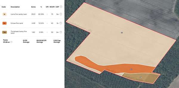 The farm is built primarily on productive Icaria fine sandy loam soils, offering an ideal balance of drainage and moisture retention - well suited for high-yield row crops with reduced drought risk. The region is widely known for successful production of peanuts, cotton, soybeans, corn, and quality forage crops, supported by generations of proven farm stewardship. The property was planted in corn this past year and is well positioned for continued agricultural use.