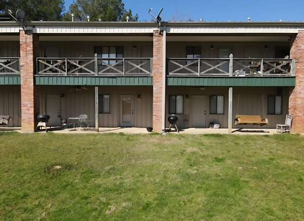 Each share includes a ~525sqft, 1-bedroom, 1-bath condo, with both front and rear porches overlooking a 3-acre stocked lake .