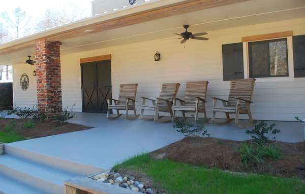 Back porch lake views, and easy access to shared outdoor amenities like a fire pit, grill, and smoker area (implied by the property's overall amenities) for gatherings and relaxation.