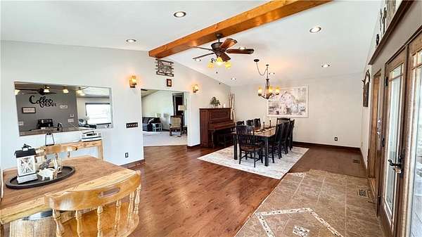 Welcome to your peaceful country retreat, perfectly situated between Lakin and Ulysses, Kansas. Spanning 38.6 fully fenced and cross-fenced acres with mature windbreaks, this income-producing property is ideal for both livestock and equine operations. Cattle facilities include 150 ft of concrete feed bunks, two grow pens accommodating 75+ head, pipe-fenced corrals, and both ground and semi loadout chutes-all connected north to south with alleyways for smooth cattle movement. For horse lovers, enjoy a 150'x300' roping arena complete with catch pen, return alley, and chute, plus a 36'x48' barn featuring two indoor stalls with attached runs, new 200-amp electrical panel, and adjacent hay storage. The fully remodeled 4-bed, 3-bath, 2,600 sq ft home offers comfort and style. Major upgrades include a brand-new Dakota Aquifer well (July 2025), new gas lines (Dec 2024), hot water heater (Dec 2024), and Class 4 impact-resistant roofs on the house, barn, and chicken coop (Aug 2023). Inside, the home welcomes you with a covered front porch and custom French doors leading to an open dining area with vaulted ceilings. The chef's kitchen boasts under-cabinet lighting, a tongue-and-groove ceiling, large island with prep sink, stone countertops, and premium Wolf appliances. The living room features beetlekill pine vaulted ceilings, a rock fireplace, and stunning picture windows. The spacious master suite includes 9' ceilings, a private patio, 11x11 walk-in closet, and a luxurious bathroom with jacuzzi tub and tiled shower. Additional highlights include remodeled bathrooms (2025), custom tile, large laundry room with butcher block counter, and oversized 2-car garage that fits two crew cab long beds. Outdoors, enjoy fruit trees, asparagus patch, concrete-floor chicken coop, and more. Rare find-schedule your private tour today!