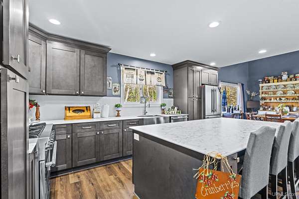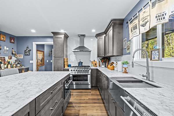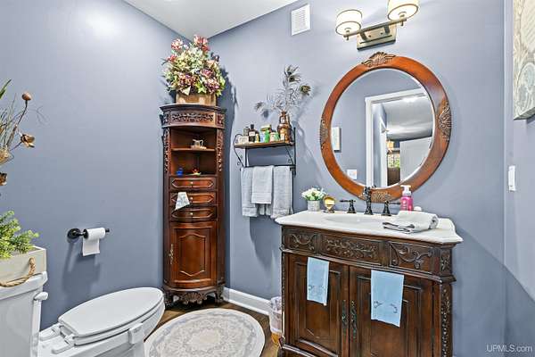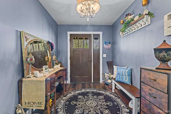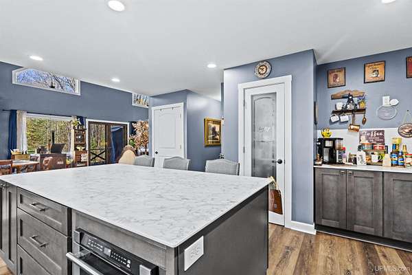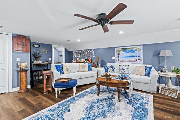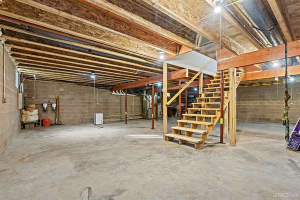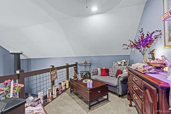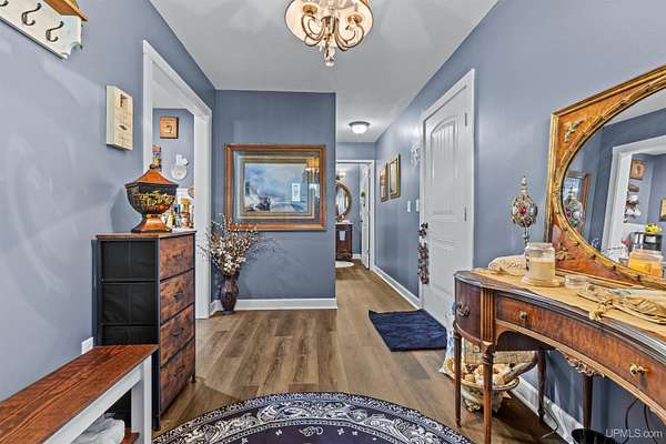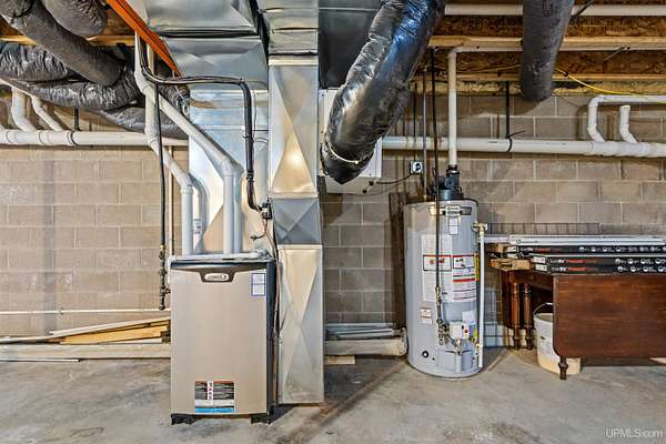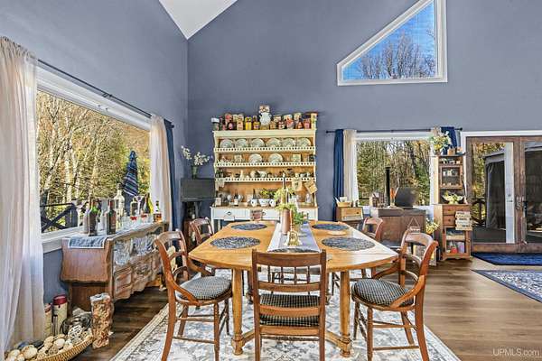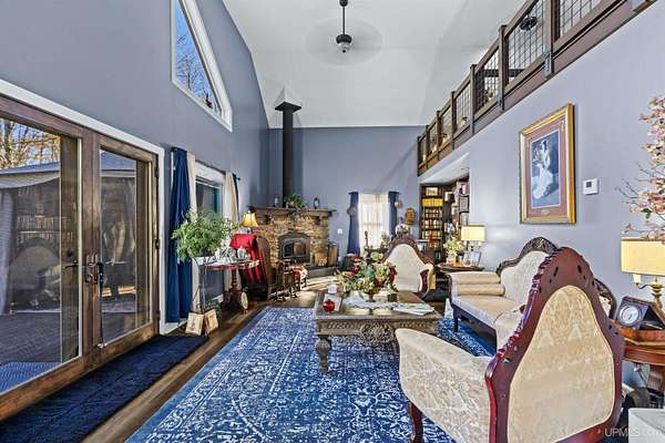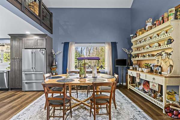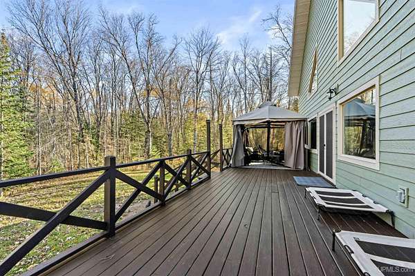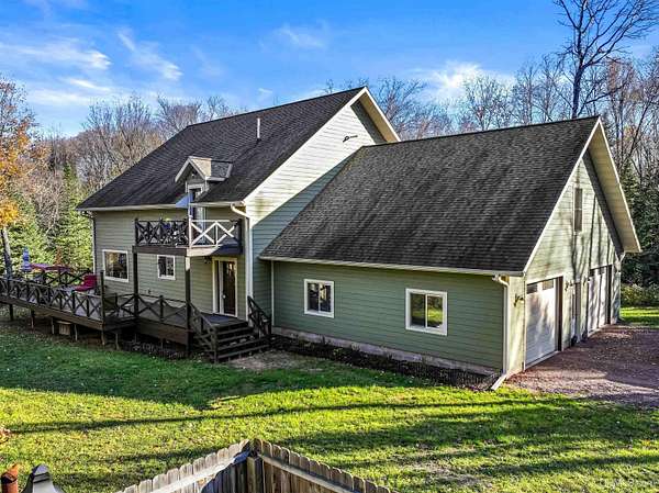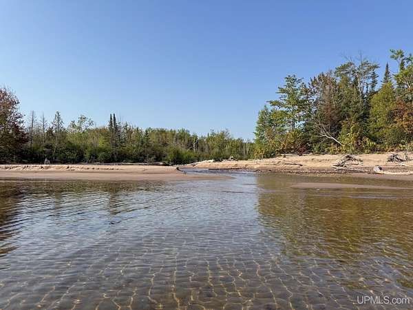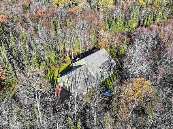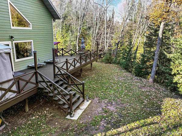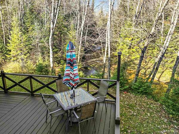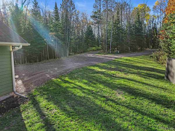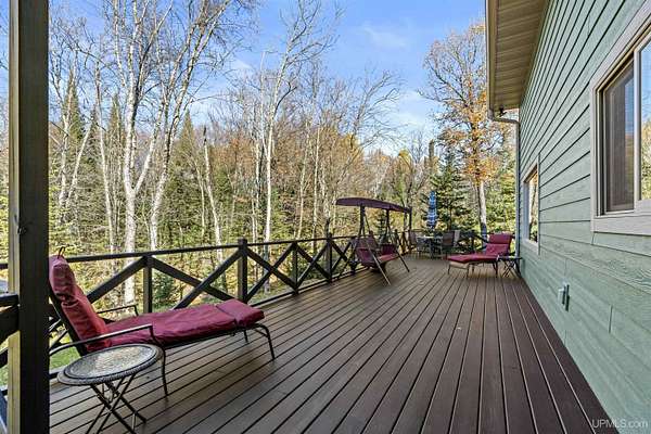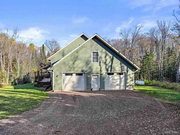 Built in 2018 by Kartunen's Construction, this beautifully crafted home blends modern comfort with practical design and exceptional detail. The spacious living area features 17-foot ceilings, ceiling fans throughout, and a Heatilator wood fireplace with blower for efficient supplemental heat. The kitchen, completed in 2023, showcases a premium Forno appliance suite with matching microwave, Thinscape countertops, and electrical in place for a future garbage disposal. Granite in both full baths and marble in the half bath add a touch of luxury throughout. Durable waterproof LVP flooring was installed in 2022, and a $5,000 flooring credit is offered to complete the main-level bedroom and update the upper level. Two Lennox heaters serve the third bedroom above the garage and the basement providing comfort, while 2x6 construction with Nu-Wool insulation ensures long-term efficiency. Fiber internet through Jamadots offer remote work opportunities and two GE whole-house water filtration systems add convenience and quality. The heated garage includes in-floor radiant heat and a full-size air compressor, ideal for year-round use. Central air conditioning cools the home and the basement, with outlets and heat vents already in place, is ready for future finishing. All major appliances convey including the refrigerator, stove, microwave, dishwasher, hood vent, washer, and dryer. Exterior highlights include Diamond Kote siding by LP, updated gutters and gutter guards (2023), a swing-clear mailbox, and a gated entrance offering privacy and security. The winding driveway with new gravel provides full seclusion from the highway. Approximately 80% of the furniture and decor may be purchased separately. The property is fully surveyed with no current plans to subdivide. This private getaway offers 2,061 feet of water frontage, direct trail access, and quiet natural surroundings. Located near the Porcupine Mountains State Park, just 2.5 miles from public sandy beaches on Lake Superior and 1.2 miles from Bonanza Falls, the home offers a peaceful river view and the soothing sound of flowing water provide an exceptional retreat. A 3D virtual tour is on file.
