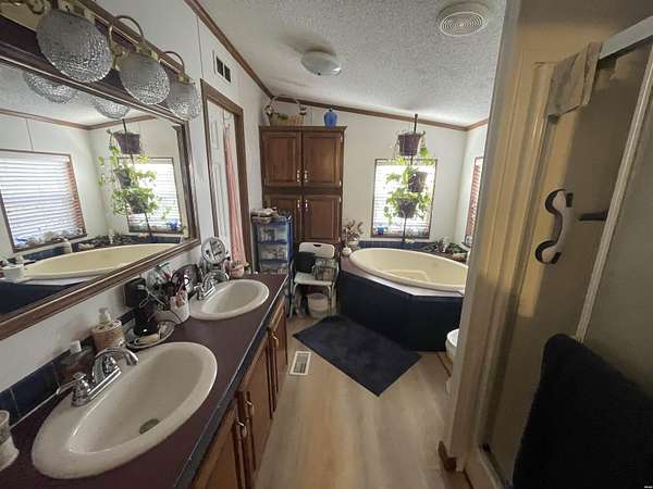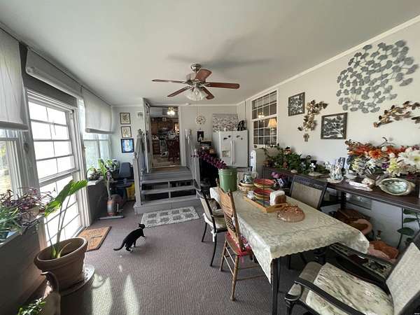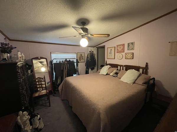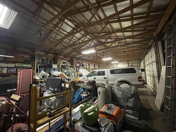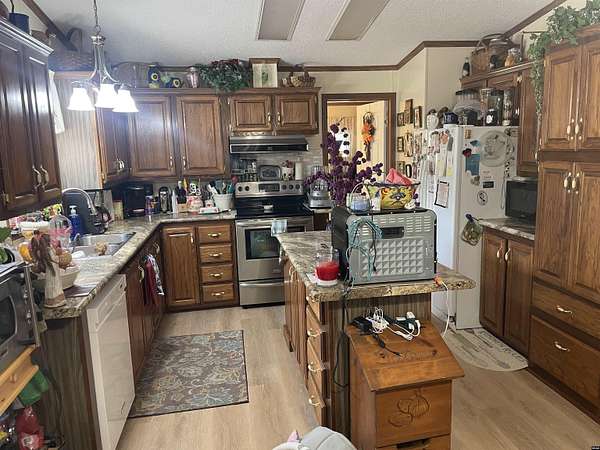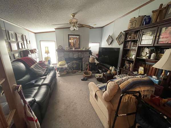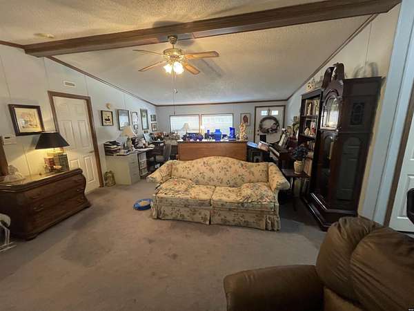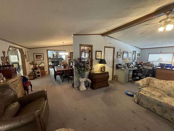Est $1,155/moHome features Living Room, Dining area, Den, 3 bedrooms, utility room, breakfast Room, Kitchen, 2 baths. 1999 Fleetwood Triple Wide on just less than 2 acres. Detached 30 x 64 shop with drop down electrical. Detached 24 x 30 garage. RV awning storage, carport awning, Garden shed, Enclosed Patio with exterior storage attached. Front porch deck with ramp. 5-year-old metal roof. Corner lot on Section line Rd. and State Line Rd. Asphalt Driveway.