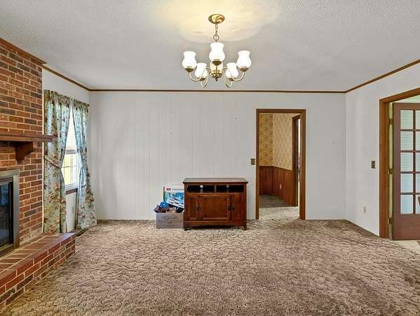 Est $1,311/moTimeless, one-story brick ranch home on a gorgeous lot! The flat, wide open space offers plenty of room for your ideal setup, whether it be a shop, garden, play equipment, or space for hobbies. Homes on this type of lot at this price point are rare! Enjoy living outside of the city while still being close to everything you need. Other features include 3 bedrooms, 2 bathrooms, a formal dining room, a living room, and a den with a fireplace, as well as a welcoming front porch, paved concrete driveway, and attached covered parking. The roof was replaced in 2024, and the HVAC has been upgraded within the last 10 years.