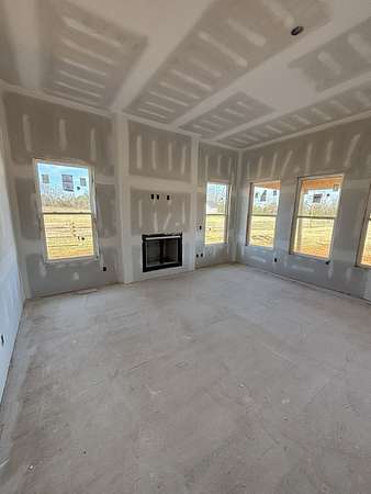 A formal dining room at the front of the home can easily serve as a home office, study, or flex space depending on your needs. The open living area is anchored by a gas fireplace, creating a warm and welcoming focal point for gatherings.