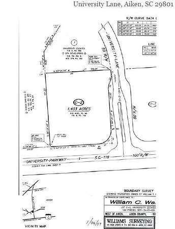 This 1.4 acre lot is strategically located in west Aiken a few hundred yards from the USC-Aiken college and Aiken Regional Medical Center campuses. It sits at the corner of University Parkway and University Lane. Across the street is a shopping center with service businesses and a sandwich shop. In the immediate vicinity are numerous medical facilities and a Zaxby's. To the south of the property is a Walmart Superstore along with numerous small shop tenants. The adjacent property to the west is occupied by an ambulance service. This parcel is in Aiken County and currently zoned RUD according to Aiken County records. From Interstate-20, exit #11, Bettis Academy Road. Go South towards Graniteville. Turn left on Ascauga Lake Road towards downtown Aiken. Then Trolly Line Rd, Gregg Highway, Augusta Aiken Rd, then University Parkway. Property will be on the left. From Downtown Aiken, go West on Augusta Aiken Road. Turn right on University Parkway. Property will be 0.2 miles on the left.