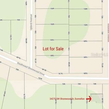 From Dunnellon head North on US-41N, go past Rainbow Springs State Park. Turn left (West) onto SW Rainbow Lakes Blvd. Turn right (North) onto Soundview Drive. Turn left (west) onto Barnacle Drive. Turn right (North) onto SW Westwater Drive. Turn Left (West) onto SW Shorewood Drive. Turn left (West) onto Uplands Ave. Lot will be on your right with sign. You can use 24270 SW Shorewood Drive address on your GPS to get close.