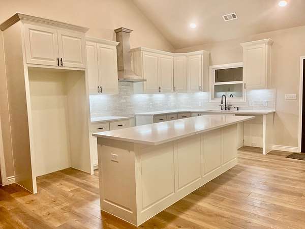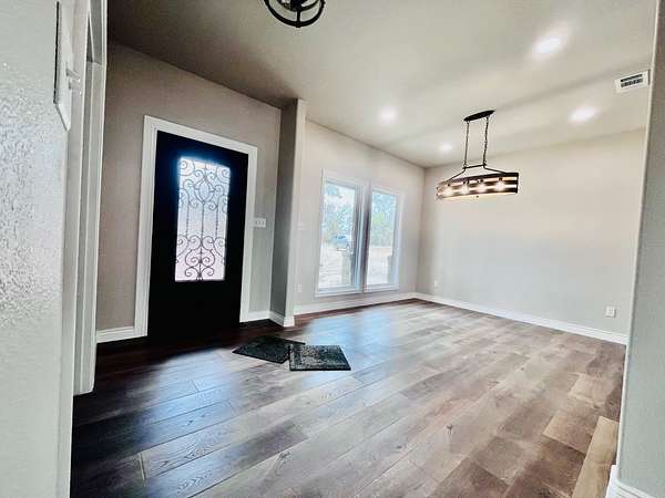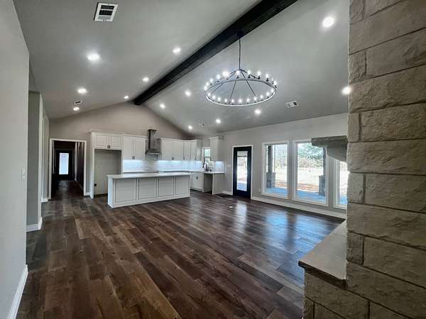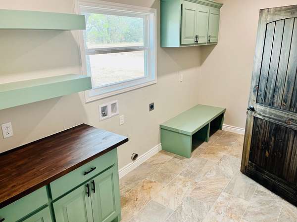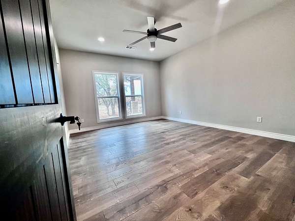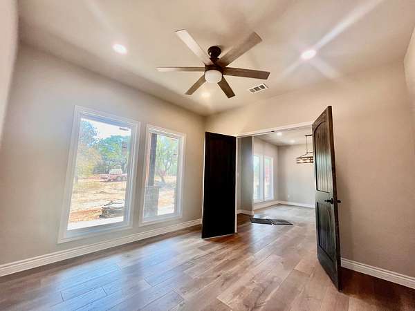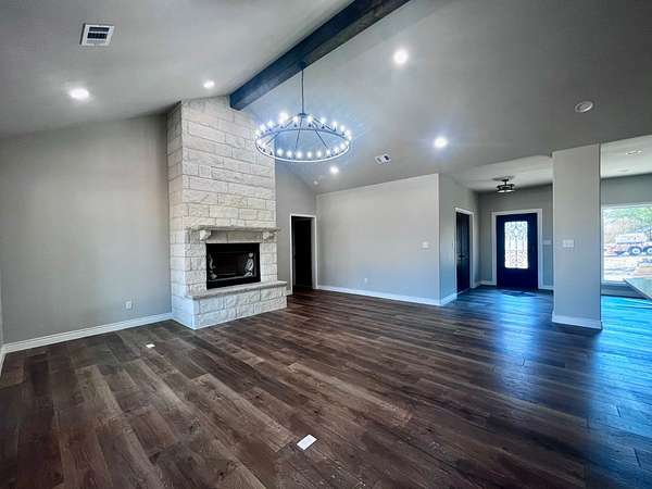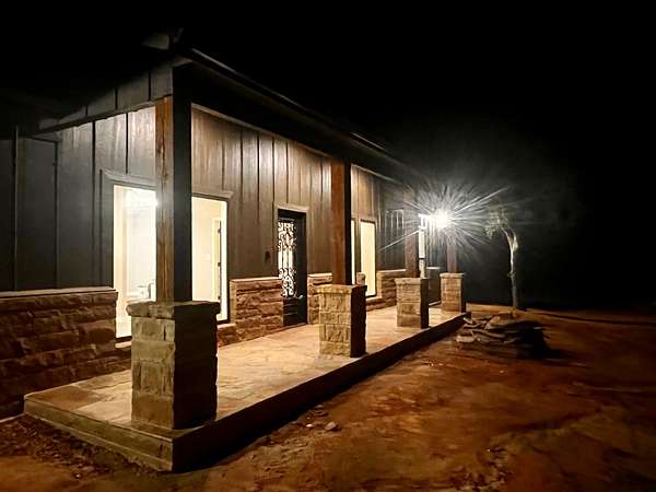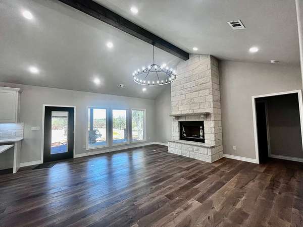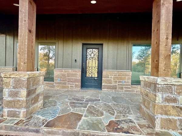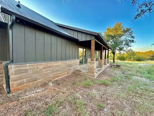 3 Bed -3 Bath + Office. NEW CUSTOM HOME sits on 10 beautiful acres full of mature and baby oak trees. This quality built home offers a classy rustic style and a smart SPLITFLOOR PLAN. It boasts of an open concept area that allows the enjoyment of natural light through the large front and back windows. A wood burning white stone fireplace enhances this area as well. Throughout the house are custom cabinets and custom closets, wooden doors, and LED lights. Quartz counter tops are in kitchen and bathrooms. In the kitchen \\\\" The Host of your Reunions\\\\" is a nine feet long island, with plenty of cabinets and drawers, a large stainless sink with accessories, smart under cabinet lights, a garbage disposal; and a walk-in pantry with plenty of storage. The 3 full bathrooms have tile flooring, tile shower walls, and LED-anti-fog mirrors. The Master en-suite bathroom offers a walk-in shower, jetted jacuzzi tub, walk-in closet, and a private water closet. Office Room- enjoy your office hours, admiring nature through the large windows of this spacious room that could also be a workout room, playroom, etc. In the Laundry Room (Mudroom) a much-needed sink, custom cabinets, and tile flooring (wall hooks will be installed). Pergo luxury vinyl plank flooring in bedrooms, open concept area, and pantry room. Smart Thermostat. Foam Insulation. Stone skirt around the house, and stone on front and back porch that face the sunrise in the mornings and sunset in the evenings. Metal roof. hand finished iron front door with hand forged grills and Aquatex privacy glass with an Emtek door handle. Video doorbell in front porch. Smart Code keypad electronic door with locks on back and side doors. In the back porch, an 84\\\\" fan has been installed. Gutters with leaf screens, and Christmas lights plugs underneath the roof have been installed. Great internet reception for those who work from home. An existing survey will be provided. This piece of land is the home of deer, armadillos, roadrunners and turkeys. It is located just 7 minutes driving distance from the beautiful downtown of Graham. Graham hosts concerts and events throughout the year, has good restaurants, boutiques, antique stores, beauty salons, and more. Just 30 minutes away from Possum Kingdom Lake, and just an hour away from the big cities, located in the South region the beautiful GROWING City of Weatherford, and in the North Region the established City of Wichita Falls with an airport and one of the best universities in Texas.