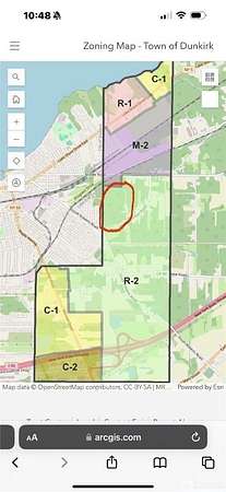 Est $1,667/mo59 Acres near high traffic, South Roberts Road! Close to Lake Erie and the Dunkirk City Pier, NYS Thruway and SUNY Fredonia! Zoned R2, great parcel to develop single or multi-family homes or your dream home! Other possibilities w the approval of a use permit may be an option as well!