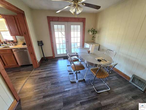 Small acreage farmstead on blacktop! Hard to find a small piece of land with a home, outbuilding and blacktop location at this price point!! Check it out before it's gone. 3 BR 1 BA with bonus sunroom that is used as a 4th bedroom or office. Upstairs level is one large open bedroom with walk in closet and beautiful picture view from the windows. Open living room with fireplace. Bonus room in unfinished basement used as 5th room! Huge Covered rear patio with view of wild life and creek. Newer roof and windows. Built in one car garage in basement. Small playhouse in back yard, 24x40 outbuilding with concrete floors and 7.5x16 garage door. Large deep Wet creek on property. Rural water plus well for the garden or animals. Garden area and chicken coop that stays. Create your own farm stead and never leave home!! Black top location 10 miles West of Clinton, 30 minutes to Harrisonville, and 1 hour from KC or the Lakes. Don't miss this it will not last!