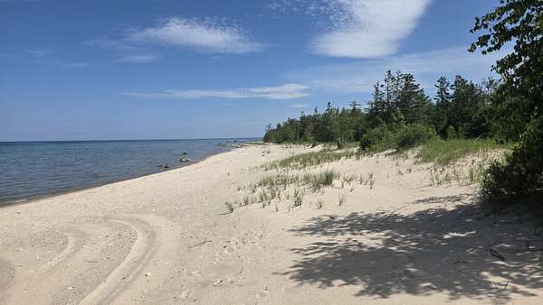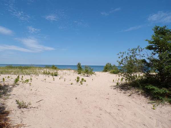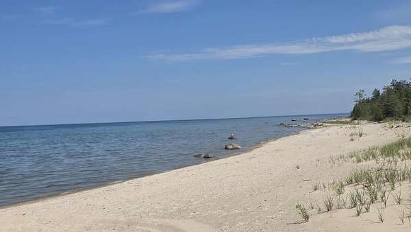Looking for waterfront without the price tag? This 3-acre buildable parcel sits directly across from public access to a beautiful sandy Lake Huron beach. There is high ground for a home and septic system despite some low spots. Electric, natural gas and fiber optic internet are at the road. Enjoy nearby Lake Huron lookouts, public access points, and Hammond Bay Refuge Harbor. Property borders hundreds of acres of common area-no HOA! Ideally located between Rogers City and Cheboygan.