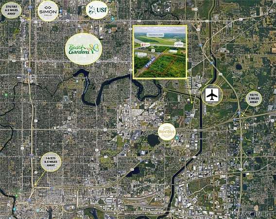 Prime development opportunity in the heart of Tampa located across from the Tampa Executive Airport. Subject property is a 4.7-acre parcel of mixed-use property at the southwest corner of US 301 and East Sligh Avenue, at a signalized intersection. The zoning will allow for most commercial uses, including hotel, restaurant, banking, Gas/C-Store and other retail and office uses. Subject property features approximately 2.37 upland acres and 2.33 lowland acres. With proper mitigation and drainage higher utilization of the property is plausible. City Water and Sewer are available near site for access. From the subject property I-4/I-75 corridor is located within easy access to the Florida State Fairgrounds, Seminole Hard Rock Hotel and the Mid Florida Central Credit Union Amphitheater. Subject fronts US HWY 301 with 330' and Sligh Avenue with 220' allowing for a variety of building arrangements for future development. Disclaimer: All information provided herein is for marketing purposes only and is not guaranteed for accuracy. Prospective buyers or tenants are encouraged to conduct their own independent due diligence. The seller, broker, and associated parties make no representations or warranties, expressed or implied, as to the accuracy or completeness of this information. All dimensions, zoning details, financial data, and other property-related facts should be independently verified. Please consult with appropriate licensed professionals before making any investment or purchasing decisions.