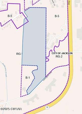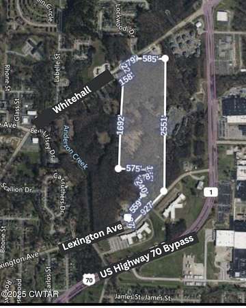 Great Investment Opportunity in Jackson, TN! Over 48 acres between Whitehall and Lexington St. covered with timber and ready to be developed into a residential neighborhood. The majority of the land is zoned RG-1, although there is a small portion in the left corner that overlaps with B-5 zoning. It is surrounded by B-5, RG-2, and B-1 Zoning, which may be of interest to buyers as it will dictate what can and cannot be developed around it. The seller does not have a survey or topography report. Some of the southside off of Lexington is in a flood zone; there is a ditch that runs through the south portion. Road frontage: 279 feet on Whitehall, 927 feet on Lexington. Parcel: 078 017.00