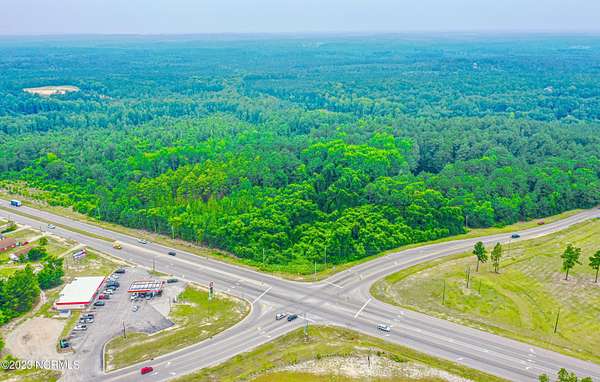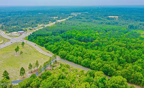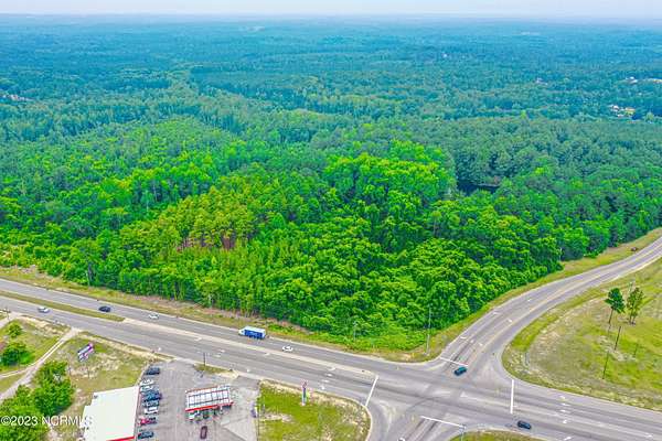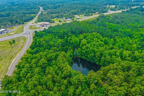 Est $4,312/moWhat a rare opportunity to own the last vacant lot at a high traffic count intersection on a main thoroughfare entering Rockingham. This property has mature timber and a beautiful log cabin overlooking the pond tucked in the center of the parcel. Enjoy your own slice of serenity tucked away from the commercial investment corner. The Highway Commercial Overlay Zoning District encompasses over half of the property. Property is currently has a farm deferred value regarding property taxes.