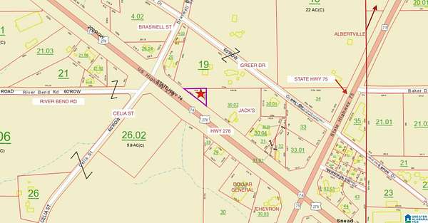 Prime Commercial opportunity in the heart of Blount County! This vacant lot already features an established driveway and gravel parking area, making it ready for your next business venture. Ideally positioned on one of the busiest highways in the county, this property offers exceptional visibility and easy access. Located next to Jack's and within sight of the heavily traveled intersection of US Hwy 278 and Alabama State Hwy 75, your business will benefit from steady daily traffic and outstanding frontage exposure. This high-traffic location provides incredible potential to attract customers and grow your presence. Bring your vision and capitalize on this rare opportunity to establish your business in a thriving commercial corridor. Sewer is across the highway and public water is on same side Buyer pays for survey