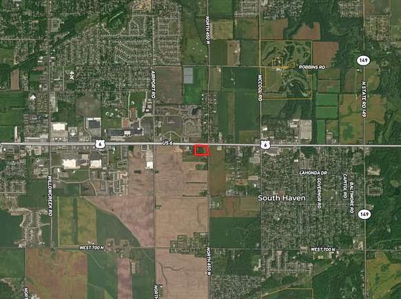 This 6.82 +/- acre commercial lot, located at the intersection of US Hwy 6 and North 450 West, is zoned C2, making it perfect for medium to large-scale commercial businesses looking to develop, expand, or start. With over 1,000 feet of road frontage, the property offers excellent visibility and accessibility for businesses seeking prime exposure.