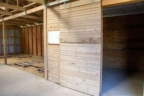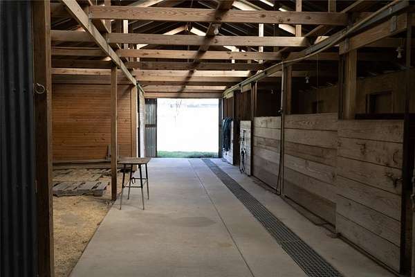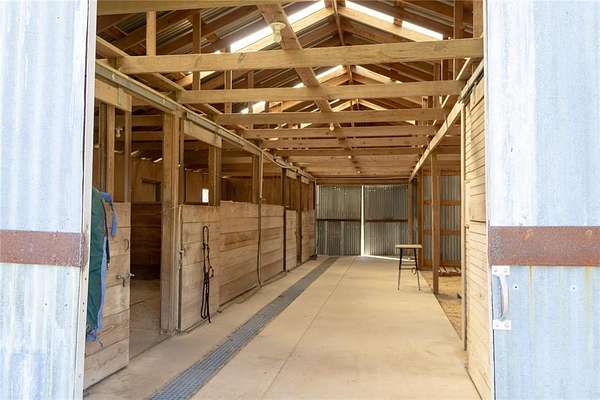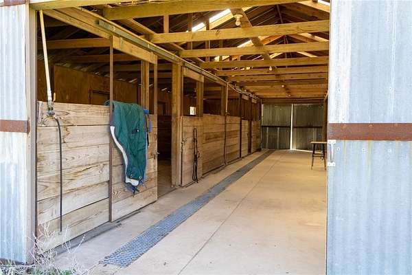 The 21.5 acres provide ample room for a variety of uses, complete with improved grasses, perimeter fencing, and a gated entrance. The property is well-equipped with a horse barn, multiple equipment sheds and carports, and a traditional windmill paired with a stone water trough—blending practicality with rustic charm.
