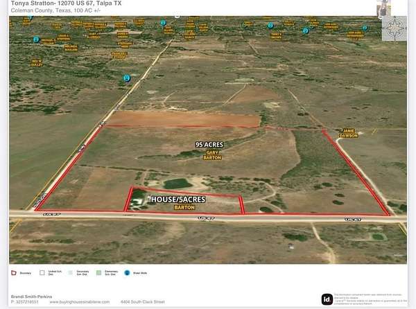 From Coleman on S Commercial Ave, travel south on US HWY 67 for 6.3 miles, keep right onto US HWY 67, travel 7.6 miles, house on the right.