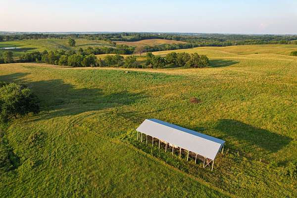 The farm features turn-key livestock working infrastructure. With excellent interior and perimeter fencing, this farm offers an excellent setup for grazing. 5 individual paddocks are fenced off with ample water to allow rotational grazing, guaranteeing improved forage production as well as improved animal and soil health. 3 ponds are fenced off and immaculate, featuring gravity flow watering on the back side of the dam. Excellent access is provided via convenient entrances, creek crossings, and property flow that is conducive to getting work done. Steeper areas of the farm include dry ponds to significantly decrease water flow after rainfall events to prevent erosion and preserve soil integrity. The property also features a fenced off 34' x 80' hay shed for storing hay, feed, and equipment.
