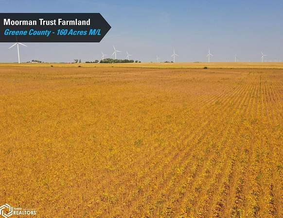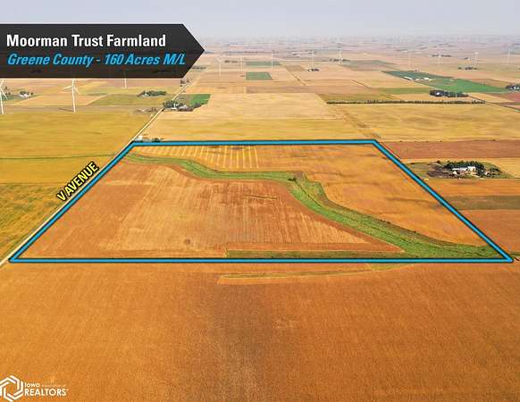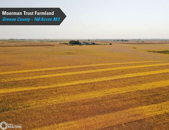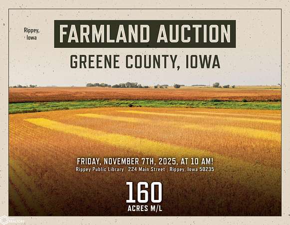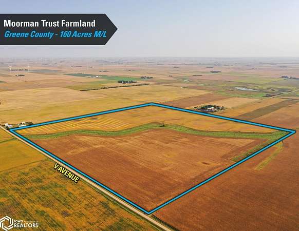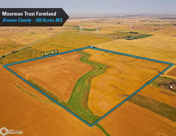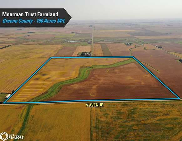 Greene County, Iowa Farmland Auction - Mark your calendar for Friday, November 7th, 2025, at 10 AM! I'm pleased to represent the beneficiaries of the Raymond E. Moorman Trust in the sale of their family farm located just north of Rippey, Iowa, and south of Grand Junction, Iowa in Greene County. The farm consists of 160 acres m/l and will be offered as a single tract. There are 147.39 certified FSA cropland acres with a CSR2 soil rating of 80.4 and prominent soil types of Clarion loam, Clarion-Storden complex, and Webster clay loam. Currently, an estimated 133.80 acres m/l were planted this year, with the balance discontinued in the Conservation Reserve Program (CRP). These acres are eligible to be farmed moving forward. Snake Creek runs diagonally through the tract, and access is from the west off V Avenue. No established crossings are in place to cross over the creek; however, there are driveways in the northwest and southwest corners that offer access to both sides of the creek. Additionally, a dead-end county road stops at the eastern boundary of the farm, offering additional access to the east side of the farm. This tract has multiple nearby grain marketing options with the Landus co-op in Rippey, Iowa, and the Louis Dreyfus ethanol plant in Grand Junction, Iowa. Located just east of Iowa Highway 144, the Iowa highway system is also within easy access. Visit our website for more info!