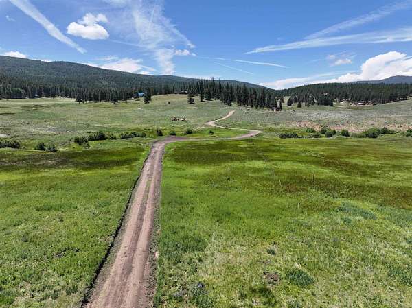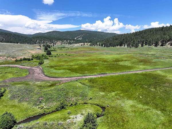 From Taos, Travel toward Angel Fire on State Hwy 64 approximately 13 miles to the intersection of Valle Escondido Road. Turn onto Valle Escondido Road and drive about 1.1 Miles to 5 way split intersection to your left, where you should see 103 Valle Escondido Road. Turn at the split and keep left, where the private road will traverse around the wooded hill. As the road drops down into the green valley toward Tienditas Creek, you will see the Real estate sign.