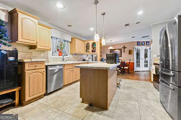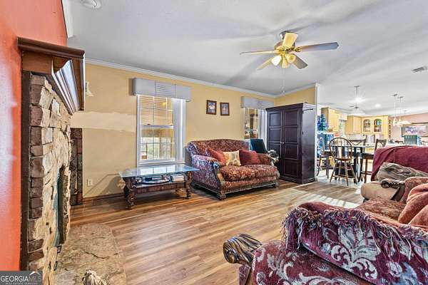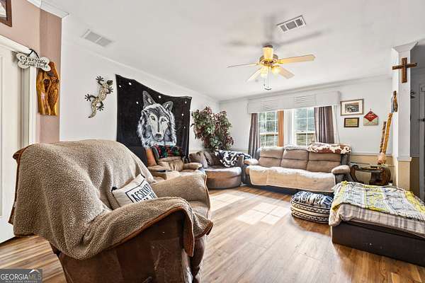 This incredible property features over 1240 ft of frontage on Osanippa Creek leading to beautiful Lake Harding! The property is fenced, cross fenced and gated giving you all the privacy you could ever want to live in the spacious 4 bedroom 3 bath home with a fabulous sunroom stretching the entire length of the back of the home. The kitchen has loads of cabinet space, counter space and a large island for additional food prep space. The open concept opens to a formal dining area, office with French doors for privacy and a spacious living area. The primary bedroom is large with lots of closet space and a huge ensuite bath with double vanities, large tub and separate shower. Bedrooms 2 and 3 share a "Jack & Jill" bath while the 4th bedroom has it's own private full bath. This is a wonderful layout with the primary bedroom being separated from the other three. The possibilities are endless for this property! There are three separate water meters and three septic tanks lending this property to becoming your own family compound or simply enjoying the complete privacy of a single residence on 9 acres!! This property must be seen in person to appreciate the peace and solitude it provides!! Be sure to click the "CAMERA" icon below the first picture for a great video tour of the 1240 feet of frontage on Onsippa Creek!!!