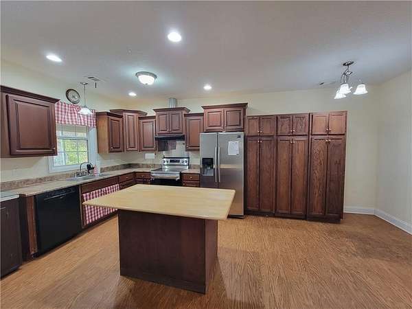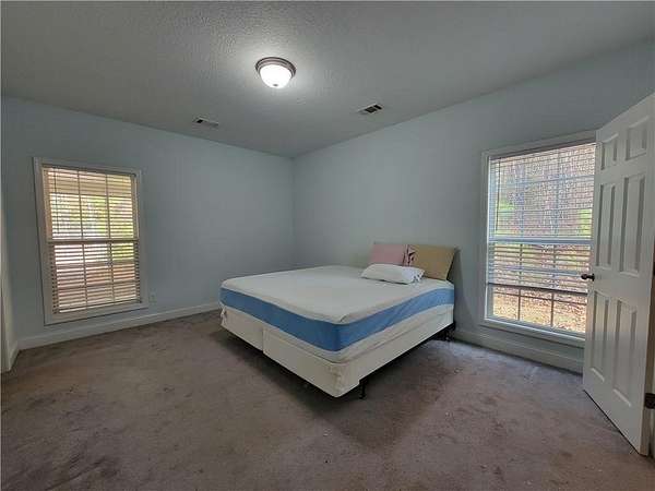 Nice ranch style home sitting on +/- 4.72 acres with Lake Harding right across the street. This private retreat has a nice long driveway with the home situated to the back of the property. There is plenty of covered parking space with a two car garage, and a two car carport. There is a very large storage shed with 4 different entrances and sections that offers the perfect space for a "mancave", workshop, "she shed", playhouse, etc. The possibilities are endless. Stepping inside the home you will find all of the bedrooms down two halls to the right. There is a laundry room conveniently located across from the bedrooms, a full bathroom, and a large storage closet. Each bedroom has plenty of closet space. The primary room has a spacious walk-in closet and an ensuite bathroom with an accessible shower. The large open kitchen has ample cabinet space and room for a large dining table. The French doors off of the dining area lead to a back covered porch that extends the entire length of the home. This home is ready for new owners to come in and make it their own. With the proximity to Lake Harding and lot size, homes like this do not come on the market very often.