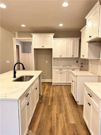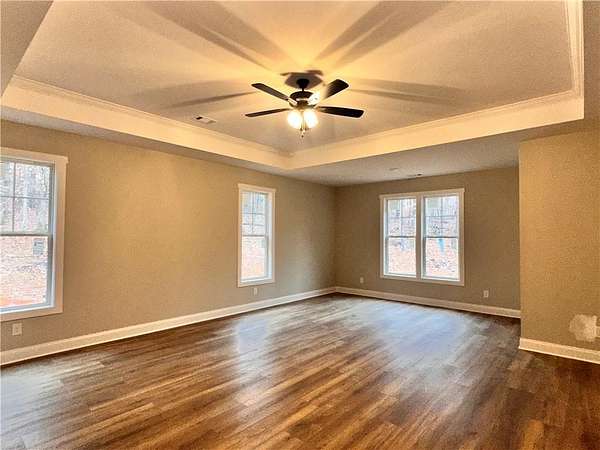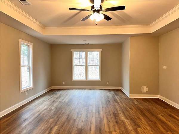 Beautiful new construction located just around the corner from Lake Harding! Situated on 1.7 acres and surrounded by lots of trees and beautifully maintained properties. Classic board and batten exterior with a large backyard and a great covered back porch with a corner fireplace. Inside, an open living floor plan and modern finishes throughout including luxury vinyl plank flooring, quartz countertops and matte black lighting & plumbing fixtures. The spacious great room is open to the kitchen which has a separate breakfast room, island, stainless steel appliances and pantry. Formal dining room with custom wainscoting and chandelier. Extended owner's suite with sitting area and the builder's most popular master bathroom featuring a large garden tub adjacent to a double tile shower and separate closets! One-level living in an all-electric home. Easy access to public boat ramps & marinas. Great opportunity to own this beautiful new home just in time for lake season! Plans & specs subject to change at builder's discretion without notice.
