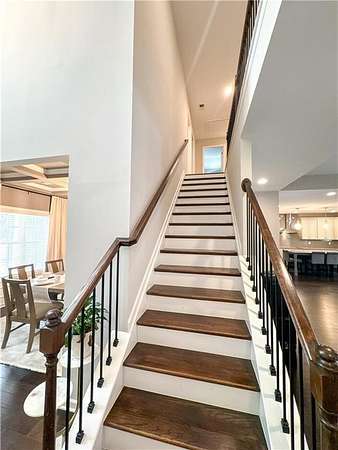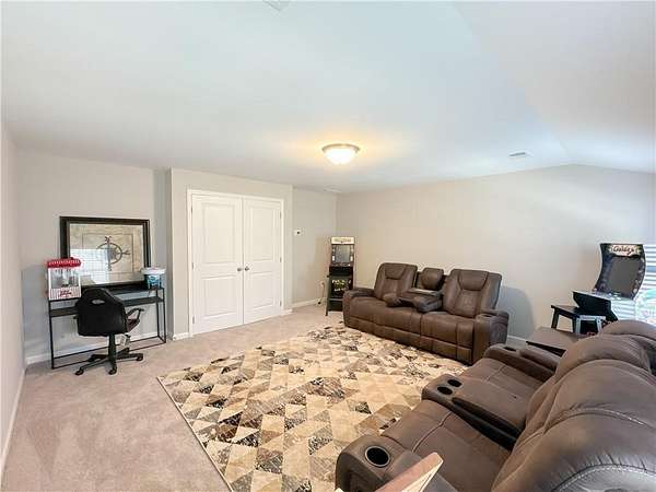 Upstairs, a media room provides a flexible second living space. The additional bedrooms are generously sized with ample closet space and are supported by two full bathrooms, allowing for comfortable family living or guest accommodations.
