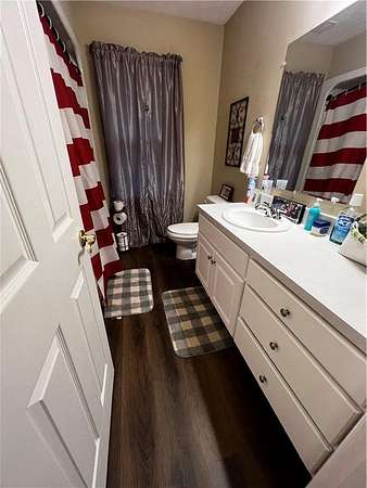 Inside, an open floor plan centers on a vaulted-ceiling great room with a brick fireplace and an upstairs open loft/office overlooking the space. The eat-in kitchen features stainless steel appliances, a raised bar, a large pantry cabinet and flows to a formal dining room. A very spacious foyer welcomes guests, and a separate laundry room adds convenience.