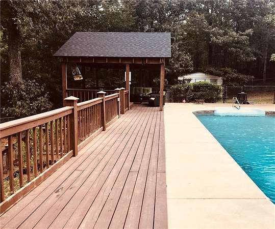 Discover peaceful country living just minutes from Lake Harding on just under 8 wooded acres. This expansive home blends indoor/outdoor entertaining with an in-ground pool, cabana, hot tub area and deck -- perfect for summer gatherings. The grounds include large front and back fenced yards, a double covered carport plus an additional parking pad.