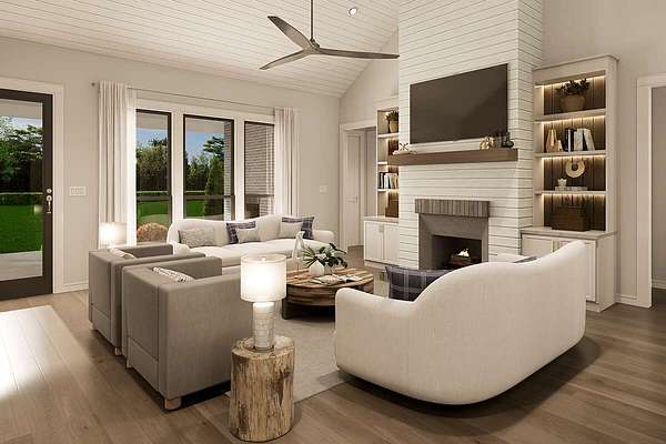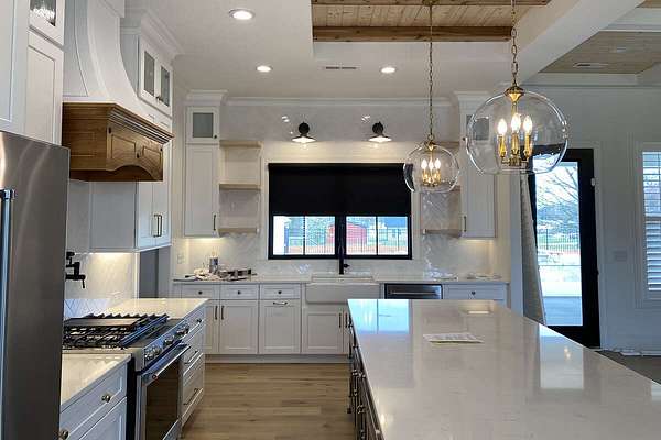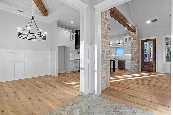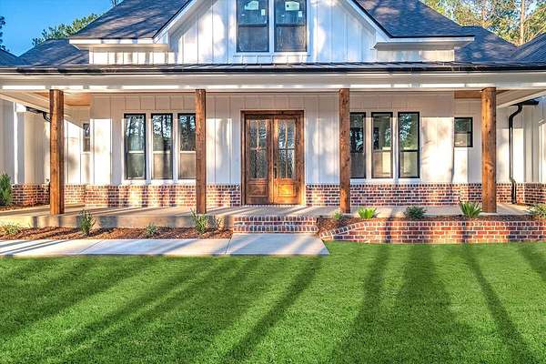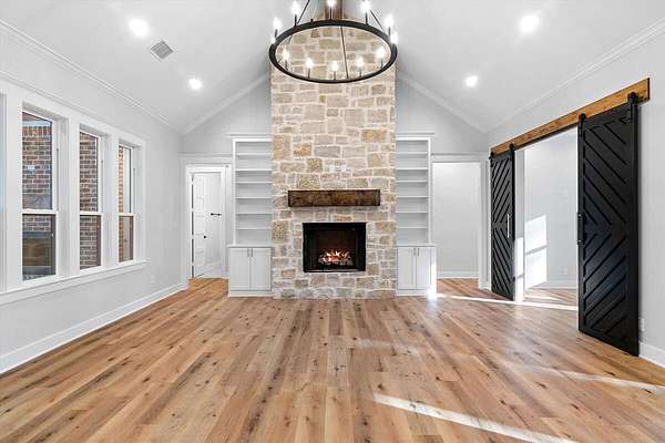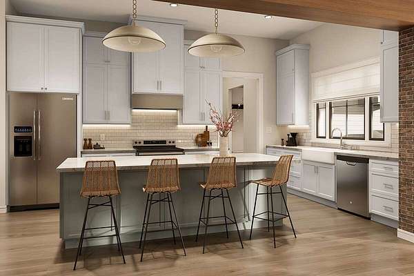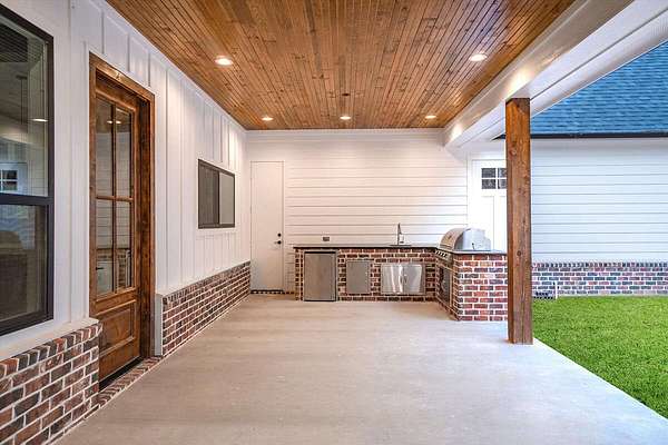 The Black Valley Creek floorplan - This open floor plan provides a modern way to make your home feel bigger while maximizing flow. Removing walls between living, dining, and kitchen zones allows in more natural light while creating a flexible layout for a multi-functional space. Create an easy entertaining space with an open living room and dining room combination. Adjacent spaces make the transition between areas feel seamless. Layout is grand and cozy at the same time. The massive kitchen island anchors living space creating a gathering place for the home. This casual vibe ignites conversations between spaces. Guests can sit on the couch and take in the gorgeous gas fireplace while still being part of the kitchen convo! Head out back to the spacious covered back porch with a real wood fireplace and outdoor kitchen complete with propane grill and sink. Listen to the sounds of Valley Creek as you disengage from the day. You're home. You're safe. Priorities. This is what life is about - the screws that keep the wheels from coming off. This is why you do what you do. Come experience Valley Creek and make it your own. We'd love to unpack your dreams with you. #saywhen