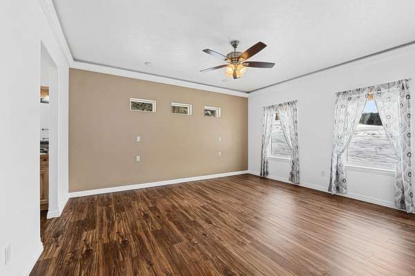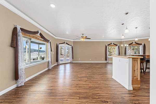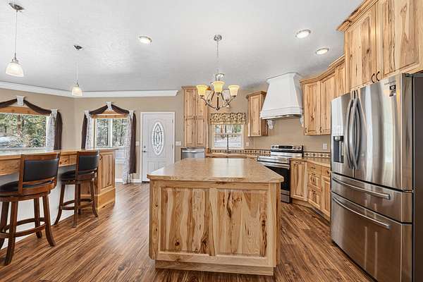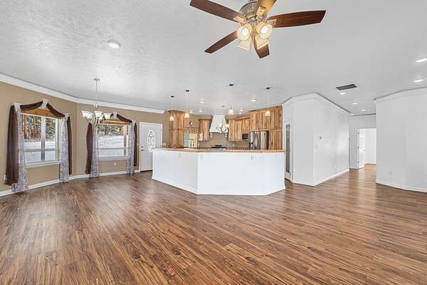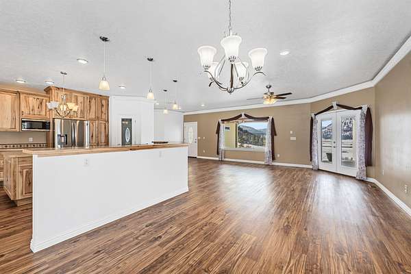Take in beautiful views of the valley from this 3 bed, 2 bath home situated on 2.24 acres. The open floor plan is filled with natural light and features luxury vinyl flooring and crown molding throughout. The kitchen offers custom cabinetry, stainless steel appliances, a walk in pantry, and a large island with an additional breakfast bar.The spacious primary suite includes a custom built in closet, tiled walk in shower, and a spa style tub. Outdoor living is a highlight with a wrap around deck perfect for relaxing or entertaining. An attached 2 car garage adds convenience and storage.Located close to local amenities including 49 Degrees North Ski Hill, Chewelah Golf & Country Club, Mistequa Casino, and nearby lakes, this property offers both comfort and accessibility.
