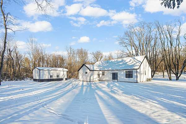 Custom, newly-constructed ranch on 2.61 wooded acres with a 32'x24' pole barn! Immersed in nature, enjoy your morning coffee on the covered front porch before stepping into the stunning, open-concept living room, where you'll love cozying up next to a good book or binging a series next to the fireplace this winter! Durable, top-grade luxury plank vinyl floors flow throughout; from the adjacent dining area (walks out to 14'x12' patio overlooking backyard) to the gorgeous kitchen, boasting a walk-in pantry, all stainless appliances, quartz countertops and ample counter + cabinet space! The charming master suite features a 9'x8' walk-in closet, as well as a 3/4 bath en suite with porcelain-tiled walk-in shower & double vanity! Two additional (spacious) bedrooms, a full guest bath, laundry room (cute built-in bench) & half bath round out your main living area, while the full basement begs to be finished, pre-insulated with high ceilings, though it currently offers tons of storage space and could make for a great home gym or play area! The attached 3-car (deep) garage is insulated/drywalled with a workshop + 8 ft doors (measuring 34.5'x23.5) and the Cleary pole barn is PLENTY big enough to house all your toys, thanks to the jackshaft opener and 12ft interior ceiling (suitable for a car lift). Host friends for cookouts & bonfires this summer in your private backyard retreat -- quiet and secluded yet offers easy access to Route 30, making the commute to downtown Valpo a breeze! Additional features include a Presby wastewater treatment (septic) system, premium gutters with gutter guards + buried downspouts, an 8-camera wired security system & much more! Affordable utilities, low taxes and NO HOA. Schedule a showing today to check out this one-of-a-kind gem!
