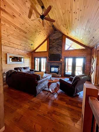 LARGE CUSTOM WOOD HOME OVERLOOKING THE OZARKS FOR SALE Large log custom built home for sale in Van Buren, Missouri. Minutes from Big Spring Park, and Ozark Scenic Riverways. Step inside this immaculate, 3 bedroom, 3.5 bath home. This precisely thought out, multi-level home in the Ozarks is a can't miss! A few of the features of this home include: Covered 2 car carport, lofted ceilings, large decks, jacuzzi tub, walk in shower, large closets, and amazing views of the Ozarks. CANT MISS HOME NEAR CURRENT RIVER When stepping inside the home, you immediately see the large vaulted ceilings, and natural light. There is a small storage closet immediately to the left, followed by a washer/dryer room, and then half bath. The living room features a fire place, and double doors leading out to the deck. The left portion of the home features the master bedroom with doors that lead to the deck as well. It has a large bathroom, his/her sink, jacuzzi tub, and walk in shower. The right side of the top level of the home has a large open kitchen area, with dining room table. The basement features a large open living room/ entertainment room as well as 2 bedrooms, and 2 bathrooms. When walking down the stairs, you're immediately greeted by another large open area and fire place. You can access the lower deck from here. The lower deck offers the same amazing views, and features a hanging bed from the top. The basement has 2 bedrooms conveniently located on each side of the home with large walk in closets, and bathrooms. The walk in closets, are currently being used for bunk beds. FULL TIME HOME OR POTENTIAL INCOME PRODUCING HOME IN VAN BUREN. Conveniently located approximately 1 mile from the Current River, this home has unlimited potential. It has the perfect placement minutes from Van Buren, Mo making it the perfect full time residence, vacation home, or VRBO. The home is currently set up to entertain a large amount of guests, which could potentially maximize its income. Come checkout this beautiful log home, in the Ozarks!