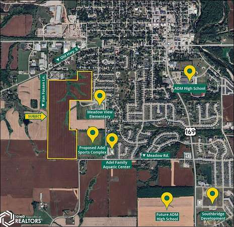 117.72 acres, m/l, located on the east side of Van Fossen Ln. in Adel, Iowa. This gently to strongly sloping farm has an estimated 111.29 FSA/Eff. crop acres. There are currently an estimated 107.00 acres in production with a CSR2 of 86.50. The property includes a 36' x 25' grain bin. Water and sewer connections are available at or near the property. Adel Future Land Use map shows single-family and medium-family residential use.