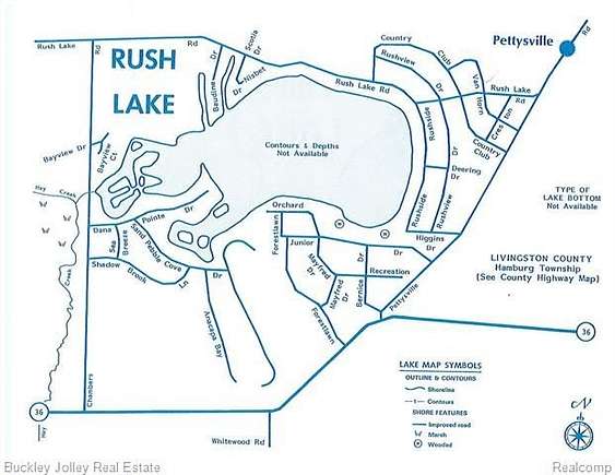 Est $589/moPerfect opportunity to build your dream home! Located in sought after Rush Lake Estates, you'll also have access to the park and beach area for private all sports Rush Lake. It is just a short walk away. This street is tucked away in a quiet location just off the beaten path yet close to Pinckney schools, shopping and M-36. The lot offers great wooded views. Utilities are close by. A well will be required. The sewer assessment is paid off so there is just a tap in fee. Come walk around this property and see the beautiful lake and neighborhood!