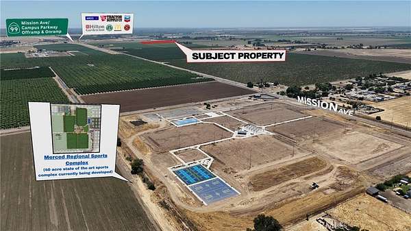 Location, Location! This 19.84-acre parcel is part of a 161+/- acre family ranch in the path of development which could be purchased together. Strategically located w/in close proximity to Hwy 99 and the newly developed Campus Expressway overpass, a direct route to UC Merced. The property is also located within the "Merced Vision 2030" SUDP Boundary, making it well positioned for future growth demand. Future possibilities could include commercial, industrial or residential development for this underserved market area. Also, in close proximity is the Gateway Marketplace, the newest regional commercial development project currently underway. The Gateway Marketplace includes major retailers such as Tractor Supply, Starbucks, McDonald's, Arco, Chevron and a Hilton Hotel/Convention Center. The city of Merced just broke ground on a 40-acre sports complex just down Mission Ave, dubbed Community Park 42, a REGIONAL sports complex, allowing for large scale tournaments, concerts, and events. Land running along Mission Ave is quickly becoming the object of attention as residential communities and city infrastructure is being brought further south to accommodate the city's massive growth and grossly underserved commercial/industrial/residential needs. This parcel is also adjacent to Yosemite Wholesale, a 220,000SF distribution warehouse. As the city of Merced determines its need for commercial, industrial and residential land necessary to accommodate its quickly growing population and a growing UC Merced, this could be the best timing to acquire development land.