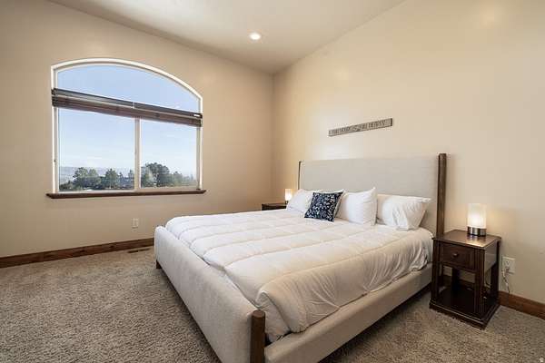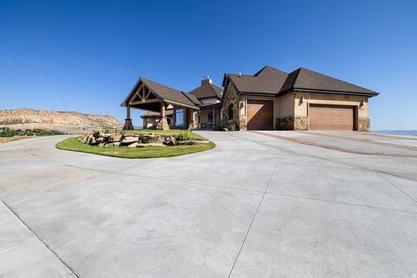 Nestled on 2.8 private acres with beautiful surrounding views, this exceptional 7,962 square foot estate offers luxury living at its finest. With 5 spacious bedrooms and 7 bathrooms, the home is thoughtfully designed for both elegant entertaining and comfortable everyday living. The heart of the home is a commercial-grade kitchen featuring granite countertops, abundant cabinetry, and generous workspaceperfect for hosting gatherings large or small. Quality craftsmanship is evident throughout with solid wood doors and trim, travertine and tile flooring, plush carpeted areas, and refined architectural details that add warmth and character. Multiple living areas provide flexibility and comfort, including a private theater room for movie nights and a dedicated exercise space for convenient in-home fitness. The expansive layout offers privacy for family and guests alike. The exterior showcases timeless real stone and stucco construction, complemented by a grand porte-cochre for covered access and added curb appeal. Outdoor living is elevated with a wood-fired oven ideal for entertaining, while a cozy wood-burning stove inside creates a welcoming ambiance during cooler months. A water softener system enhances daily comfort and efficiency. With nearly 8,000 square feet of living space and 2.8 acres of privacy, this remarkable property combines space, craftsmanship, and premium amenities in one impressive estate.