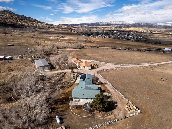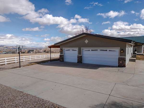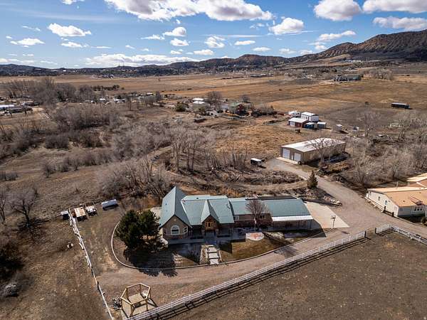 Custom Designed 4-Bed, 3.5-Bath Hillside Retreat on 5.9 Acres Welcome to your dream home in Vernal, Utah, where custom design and natural beauty come together and offer stunning views of the valley and surrounding mountains. This horse and livestock property includes riding arena, stalls, tack shed, self filling water troughs, and water hydrants. It is located just minutes from Flaming Gorge, Steinaker Reservoir, and Red Fleet State Park, it's a perfect base for access to world-class boating, fishing, river rafting, and hiking, while still being close to town amenities. The home features an open-concept layout filled with natural light, highlighted by large windows and a cozy gas fireplace in the main living area. The kitchen includes custom cabinetry, high-end appliances, and a spacious island-ideal for everyday cooking or entertaining. All four bedrooms are well-sized, with the owner's suite offering a walk-in closet, and en-suite bath with dual sinks and a walk-in shower. Outside, enjoy the many lounging areas, mature trees, and wide-open space to roam or expand. There's plenty of room for toys and storage with a 3-car garage and dedicated RV parking. This is a rare opportunity to own a thoughtfully designed home on acreage with room to grow, just a short drive from Vernal's shops, schools, dining, and endless outdoor recreation. Call today to schedule a private showing and experience this one-of-a-kind property. Square footage figures are provided as a courtesy estimate only and were obtained from county records and appraisal. Buyer is advised to obtain an independent measurement. Buyer to verify any and all information provided via this listing. Seller and Agent are related. A.I./virtual staging was used on some photos.