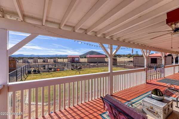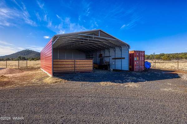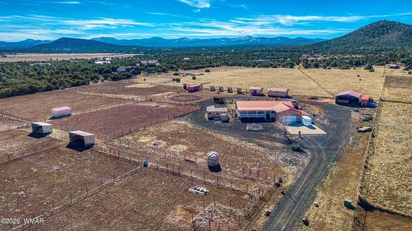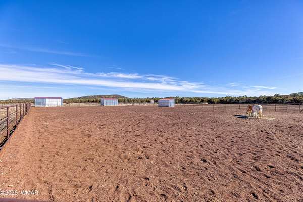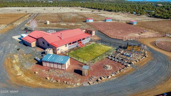 Incredible Horse Property in Vernon on 6.81 Acres! Welcome to this amazing equestrian property nestled in the peaceful area of Vernon. Situated on 6.81 acres of level land, this custom built home offers 2,166 square feet of thoughtfully designed living space with 3 bedrooms and 2 bathrooms. Step inside to a spacious open concept living area featuring stunning pine tongue and groove ceilings, and pine plank flooring, solid pine doors, and a beautiful soapstone wood burning stove that fits the space wonderfully. The kitchen is both functional and charming with custom wood cabinetry, upgraded appliances including a 6-burner gas range, generous counter space, a breakfast bar, and an oversized sink. The split floor plan provides privacy, with a spacious primary suite that includes a large walk in closet, separate shower, and a deep soaking tub for relaxing at the end of the day. Enjoy quiet mornings on the expansive front deck and unwind or entertain on the large back deck in the evenings while taking in the views. Bordering the breathtaking National Forests, this property offers panoramic views in every direction and access to miles of riding trails right from your doorstep. Equestrian amenities are extensive and thoughtfully designed. The property is fully perimeter fenced with no-climb fencing and cross fenced for convenience. Underground power and water are to each pasture, stall, and outbuilding. Features include: 170x120 riding arena, 50-foot round pen, 4 covered stalls, 5 separate pastures, Tack rooms and hay storage, Two large storage buildings, Large chicken coop, Three irrigation water tanks totaling about 10,000 gallons, There's also a dedicated garden area with raised beds, roses, apple and peach trees, plus a fenced grass area. Guests will appreciate the bunkhouse and the designated RV space with a 30-amp hookup. For hobbyists or professionals, the woodworking shop includes a wood stove, 240 V power, and some machinery that will convey. Additional highlights include: Fire-safe, hookup for a generator, New A/C unit, New water heater, Security doors, New gutters and downspouts, Recessed lighting throughout the home, Owned propane tank, Durable metal roof, Heated garage with attached storage room, New refrigerators and freezers included, This rare White Mountain property offers the opportunity to enjoy country living at its finest, with potential income possibilities through horse boarding. Don't miss your chance to own a truly special piece of Vernon.