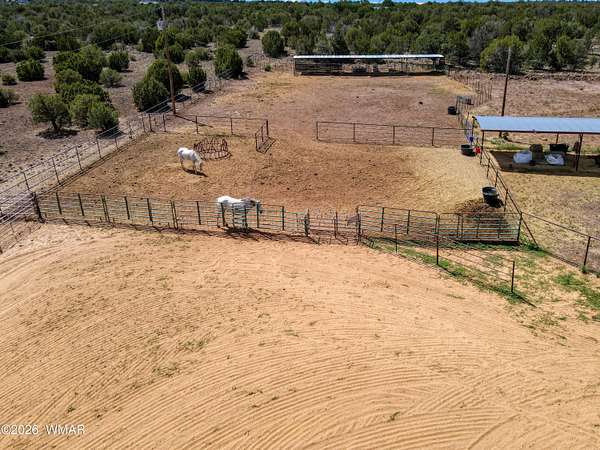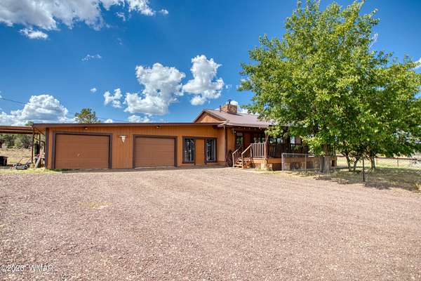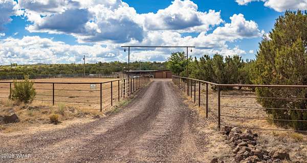 Welcome to Northfork Ranches by ''The Y,'' just 15 minutes from downtown Show Low! This rare 7.25-acre horse property offers the perfect blend of country living, modern convenience, and equestrian amenities. A gated entry welcomes you into the property, where you'll find an oversized riding arena complete with a roping chute, two corrals, and four covered stalls, making this an ideal setup for horse lovers and ropers alike. The acreage is partially fenced, with plenty of space for additional animals, trailers, or future improvements. The home features three bedrooms and a potential 4th bedroom/office, a warm and inviting living area filled with natural light and country-style accents. A cozy wood stove, open dining area, and large windows create a welcoming space to gather. The kitchen offers ample storage including a large pantry for food storage and supplies. Other special features include new carpet and a new metal roof. Step outside to a relaxing covered front porch with panoramic views of the surrounding landscape, the perfect place to unwind after a long day. Additional property highlights include an oversized two-car garage, two covered carports, a private well with well house, and easy access to Highway 60. Within close proximity to National Forest, one can saddle up or take an ATV ride directly from the property and to NF access at the back of the subdivision. Whether you're looking for a full-time homestead, a recreational getaway, or the ultimate horse property, this Northfork Ranches retreat is ready to welcome its next owners.