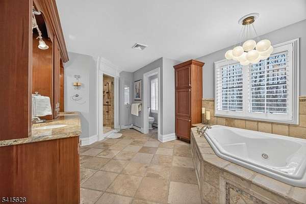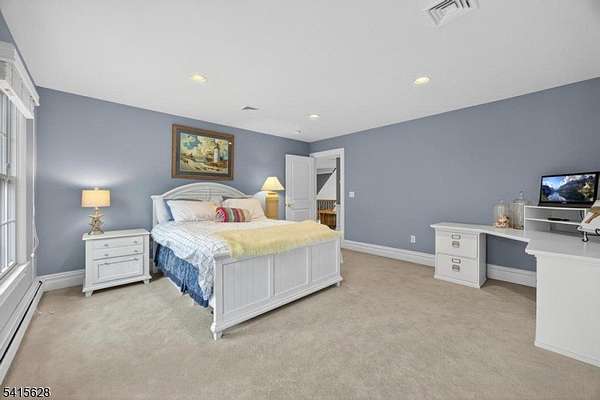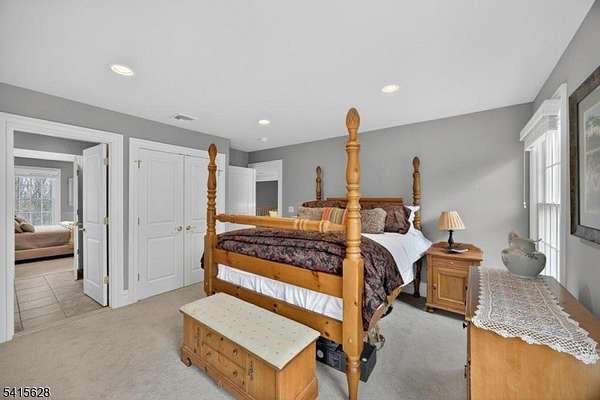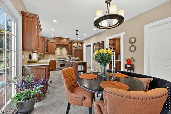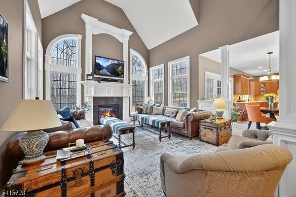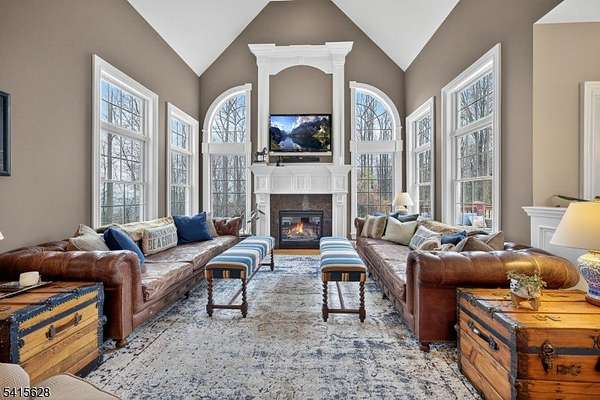 Rarely does a home combine architectural craftsmanship and four-season resort living as seamlessly as this refined residence on a quiet cul-de-sac in the heart of Vernon Twp. with a Sussex mailing address - ideal for full-time living or a weekend retreat within reach of NYC. A soaring two-story foyer introduces a crafted staircase with raised-panel millwork, wrought-iron balusters, and an oak handrail. Toward the rear of the home, a dramatic two-story great room unfolds where arched and transomed windows fill the space with natural light, complemented by one of two gas fireplaces and an open loft above.The formal dining room features a coffered ceiling, raised-panel wainscoting, crown molding, and hardwood floors with custom inlaid borders. The kitchen blends warmth and performance with cherry cabinetry, granite counters, a Dacor gas range, Miele dishwasher, and a paneled Sub-Zero refrigerator. A butler's pantry enhances entertaining with a coffee station, wine bar, and beverage refrigeration. The primary suite offers a striking Palladian sunburst window and spa bath with whirlpool tub, dual vanities, and oversized shower with body sprays. Additional highlights include a custom mudroom with secondary staircase, hydronic multi-zone heating, central vacuum, irrigation, and whole-home water filtration. Minutes from Crystal Springs Resort golf, Restaurant Latour, the Biosphere pool, Mountain Creek skiing, wineries, and the Appalachian Trail with convenient access to NYC and EWR.