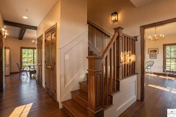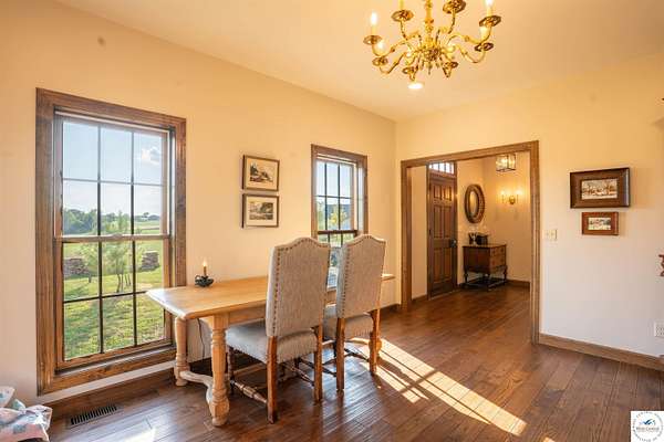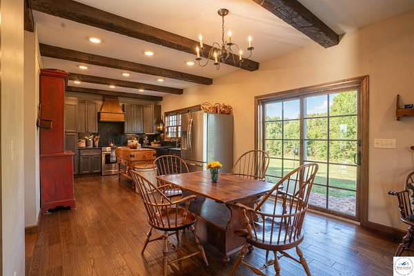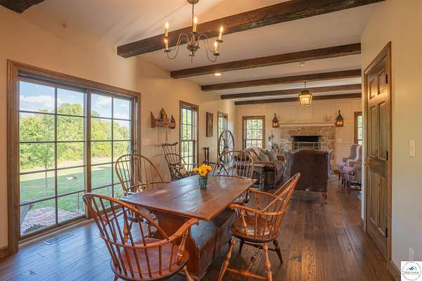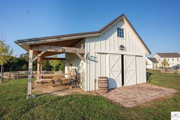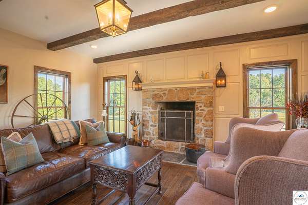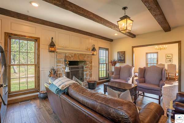Absolutely beautiful family estate! This custom-built home sitting on 15 acres M/L was constructed in 2022. Inspired by homes commonly found in the northeastern United States, it has a clean simple, yet highly functional design, including the stone dry stack wall. This home has the modern conveniences, yet when you walk through the door, it has a rustic colonial feel radiating all about. Three bedrooms, three bathrooms, with a bonus room located over the attached two car garage that serves as a game room, office, or it could easily be converted into separate living quarters with the addition of a bathroom. The home has a full basement, spray foam insulation, oak hardwood floors, and antique bricks that were brought in from a road in Kansas. The roof has shake shingles that have been treated with a fire retardant. All light fixtures were handmade in Vermont. The kitchen features soap stone counter tops and soap stone sink, also from Vermont. A magnificent stone fireplace and the glass over the classic main entrance is hand blown bullseye glass direct from Silver Dollar City. Just off the main house there is a hand hewn 1840's log cabin that was moved from Meta MO. The chicken coop and wooden barn are Colonial Williamsburg replicas. Also, there is a pond just to the south that is stocked. The acreage is a mix of open fields and timber with plenty of wildlife everywhere. This is truly a gem in the country, yet less than 10 minutes driving time to Versailles. Come take a look, no disappointments here! Additional acreage available!
