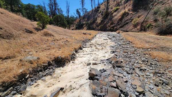 From Red Bluff, CA take exit 631 and head west on Hwy 36 toward Platina, CA. Go 31 miles. Left on Vestal Rd, no sign. At 4.3 miles stay left go .6 miles to property on right and pink tape along road frontage. Path into property another 1/10th mile.