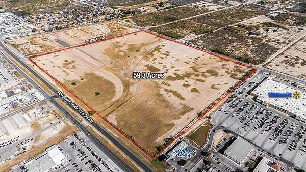 Commercial property for sale at an exceptional price! This expansive 2,588,411 sq ft tract (approximately 59.3 acres) is located in the heart of Del Rio. The property offers an impressive 1,821 feet of frontage along U.S. Highway 90 (Veterans Boulevard), providing outstanding visibility and accessibility. Offered at $2.50 per square foot, this is a rare development opportunity with tremendous upside potential. Ideal for restaurants, retail centers, hotels, or any type of commercial venture, this property is positioned in a prime location next to the largest supermarket in the city—an established anchor store—and along the busiest commercial corridor in Del Rio. This is a high-potential investment you simply cannot afford to miss. Location, location, location! For more information, please contact your real estate agent.