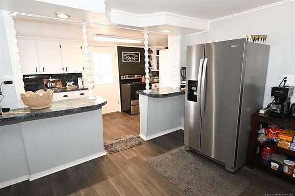 Back on the market at no fault of the seller/property! Inspections complete! Welcome to your remodeled country hideout on approximately 2.5 acres-where the porch views are free and the rules are basically, "do what you want." This 3-bedroom, 1-bath home offers 1,196 square feet (per CH) of comfortable living space and a long list of updates that make moving in feel easy. Enjoy newer interior and exterior paint, updated flooring, newer windows, and a durable metal roof built to handle Oklahoma weather without breaking a sweat. The living area features an electric fireplace for cozy nights, and the kitchen comes with appliances already in place. Yes, the washer and dryer stay too-because adulting is hard enough. Outside is where this place really shows off. The land is fully fenced, perfect for fur babies, livestock, or just peace of mind. There's a stocked pond ready for lazy afternoons and "just one more cast." You'll also find a barn or workshop for projects, storage, or that hobby you swear you're going to start. Need space for your camper or visitors? There's room for recreational vehicle parking, and with no covenants or restrictions, you can keep things simple and stress-free. A storm cellar adds peace of mind during the storm season! Mature trees-including soaring pine trees-add shade, privacy, and that real country feel. And when you want to get out and explore, you're about five miles from Lake Tenkiller and close to the Illinois River, Arkansas River, and nearby wildlife refuges. Come see it in person and imagine the life you could build here-schedule your showing today.